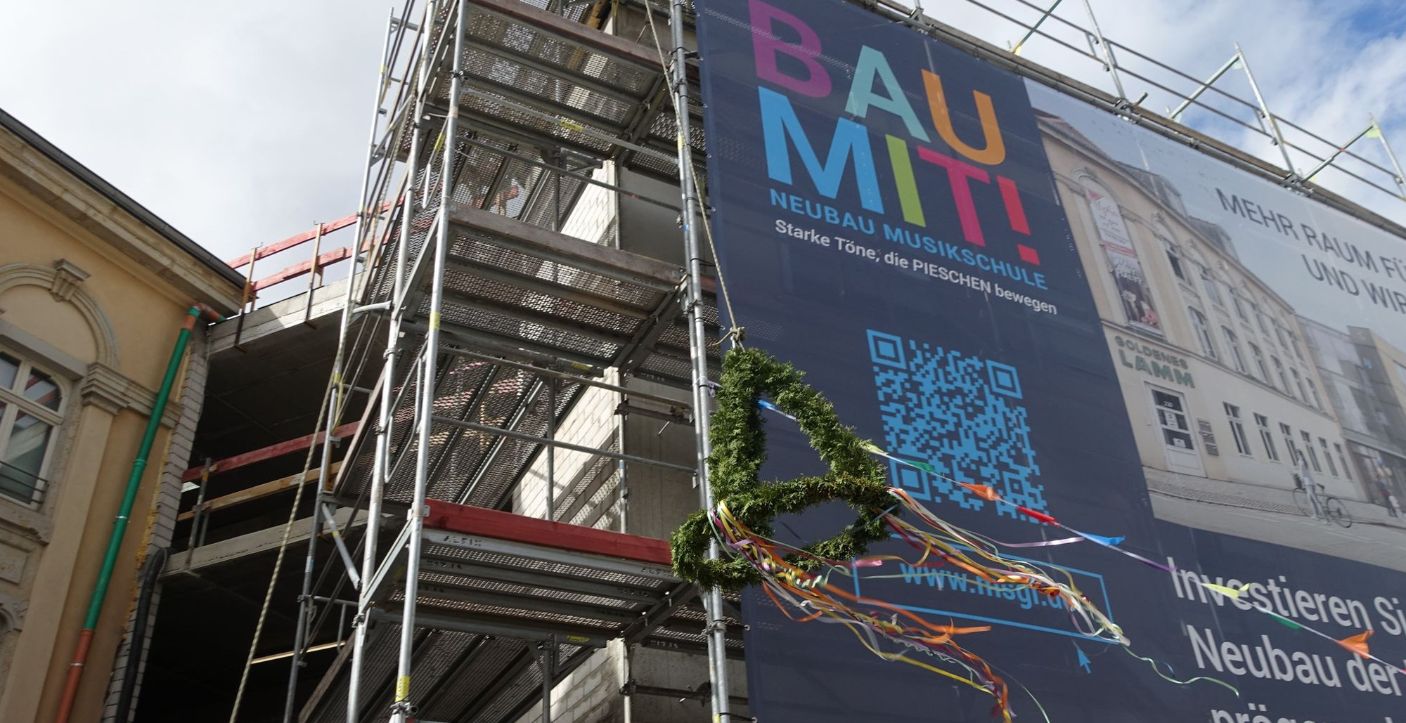 Mit Live-Musik, Reden, einer Andacht und vielen Bratwürsten und Getränken wurde gestern Nachmittag Richtfest für den Neubau der Musikschule Goldenes