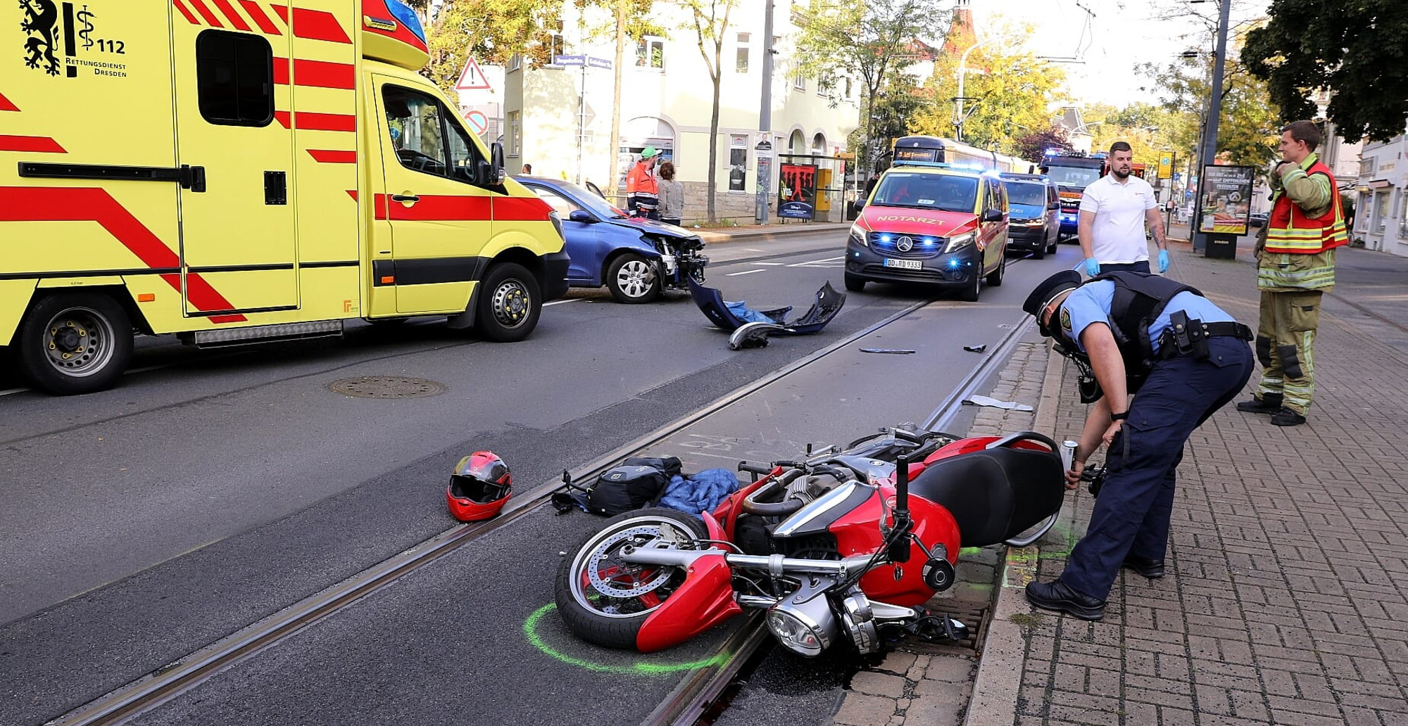 Am Donnerstagmorgen gegen 8.20 Urh ist ein Motorradfahrer bei einem Unfall in der Großenhainer Straße verletzt worden. Der 55-Jährige fuhr