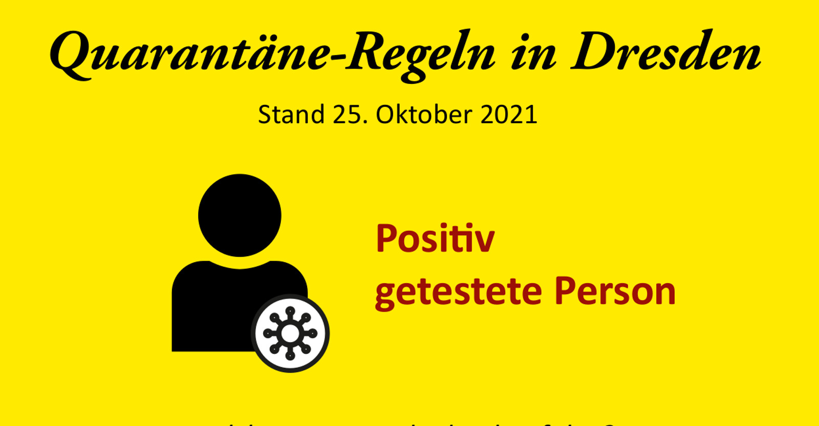 WeiterlesenSeit heute gelten in Dresden neue Regeln zur Quarantäne im Zusammenhang mit dem Covid-19-Virus. Sie sind in der von der